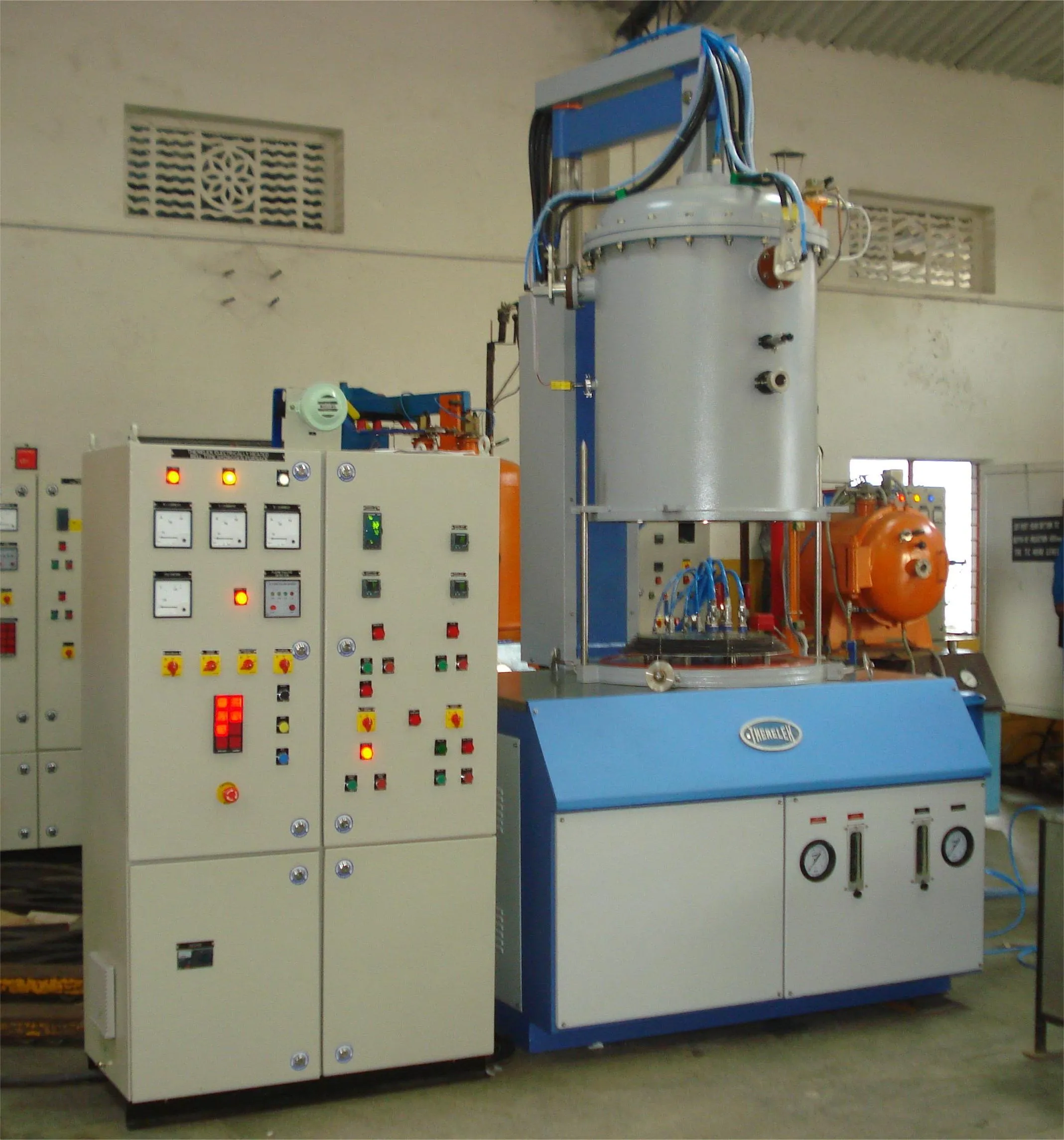 Ā Therelekās Front Loading/Horizontal Vacuum Furnaces are designed for high-production environments where efficiency and precision are essential. These furnaces feature uniform temperature distribution across the load chamber, allowing consistent brazing and hardening of multiple components simultaneously. The front-loading design enhances accessibility, reducing downtime during loading and maintenance. Suitable for automotive, electronics, and tooling industries, these systems guarantee oxide-free joints and precise control over temperature cycles. As a leading industrial furnace manufacturer in Mumbai, Therelek combines user-friendly operation with advanced safety interlocks and automation options, offering a dependable solution for high-performance vacuum brazing applications.